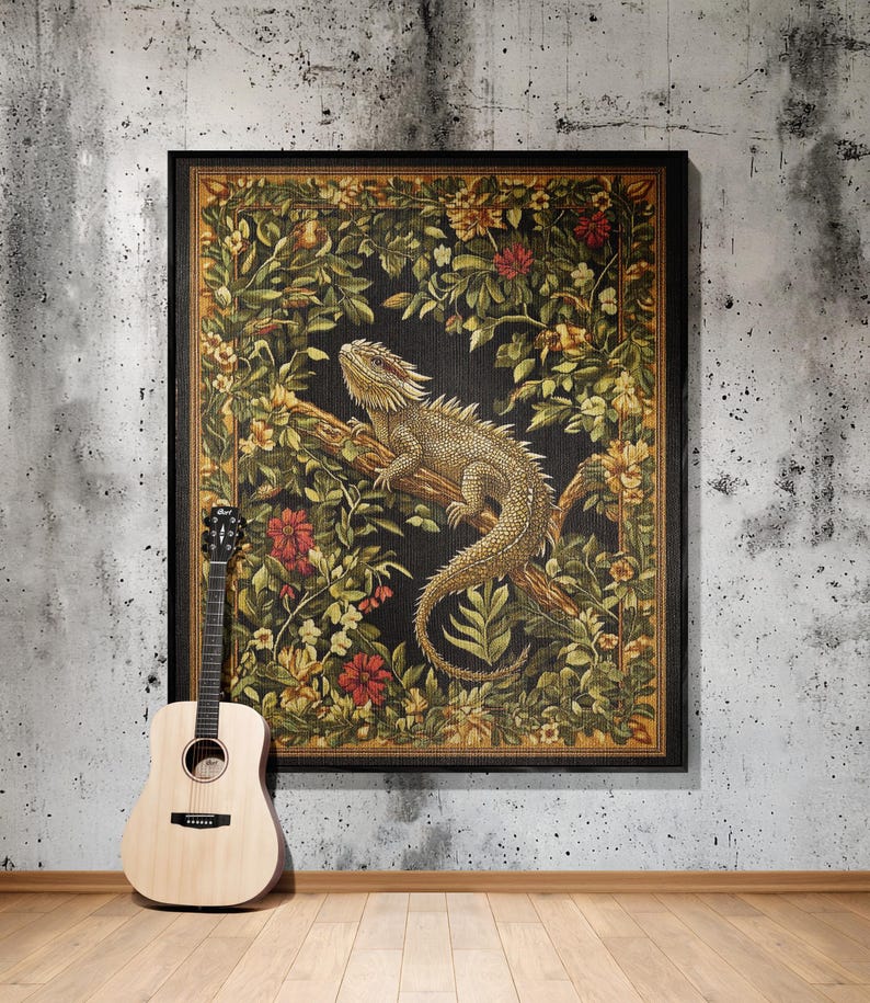 Bearded Dragon Woven Tapestry Blanket A€“ Cottagecore Botanical Floral Design