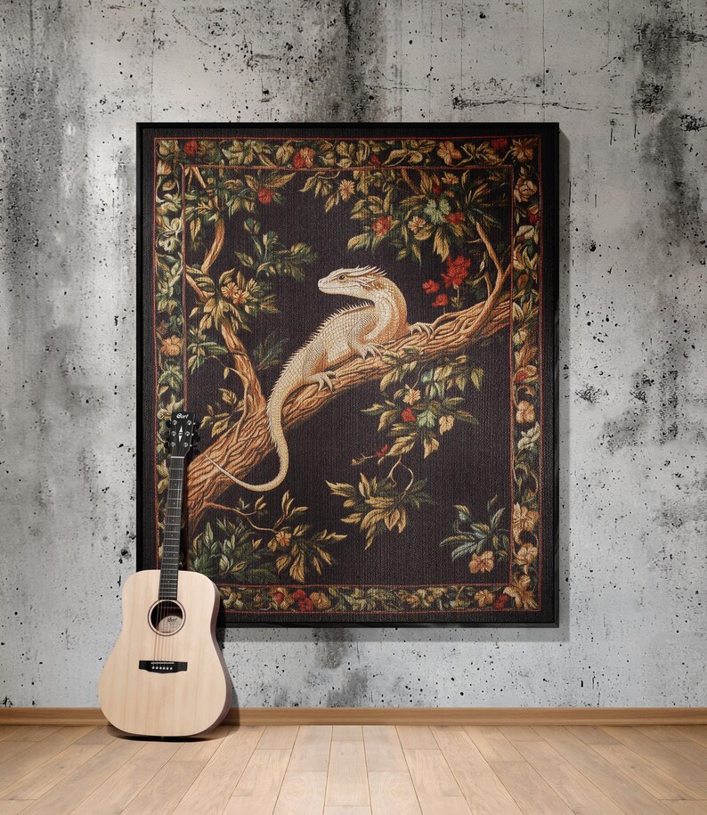 Bearded Dragon Woven Tapestry Blanket A Cottagecore Botanical Floral Design